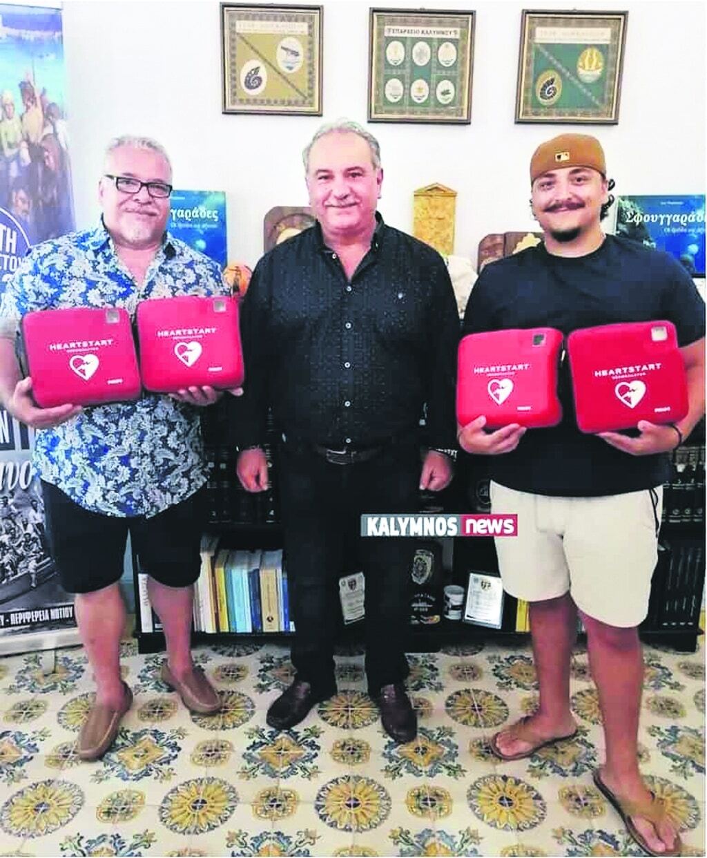 Τον περασμένο Ιούλιο ο Καλύμνιος ομογενής Μιχάλης Μυλωνάς και η οικογένειά του προχώρησαν σε μια αξιέπαινη και συγκινητική κίνηση δωρίζοντας τέσσερις καινούργιους απινιδωτές στο Επαρχείο Καλύμνου. Ο Μιχάλης Μυλωνάς, γεννημένος στην Κάλυμνο, γιός του αρτοποιού Γιώργου Μυλωνά, ζει και δραστηριοποιείται στη Φλόριντα της Αμερικής και είναι στέλεχος μεγάλης ναυτιλιακής εταιρίας. Μαζί με τον γιο του, Γιώργο, προσέφεραν τους απινιδωτές προκειμένου να αξιοποιηθούν και να τοποθετηθούν σε διάφορα σημεία του νησιού, στο πλαίσιο της πρωτοβουλίας του έπαρχου να δημιουργηθεί ένα δίκτυο που να καλύπτει όλες τις περιοχές της Καλύμνου.