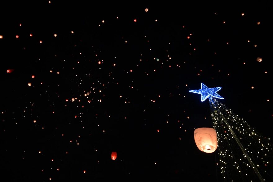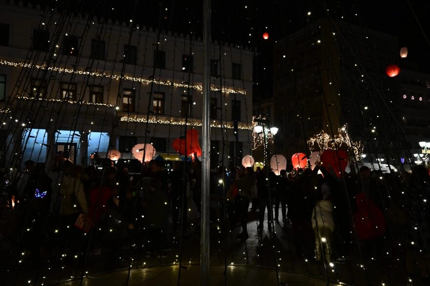 Πρόκειται για τη «Νύχτα των Ευχών», την εκδήλωση που διοργάνωσε ο δήμος Αθηναίων, καλώντας όλους τους πολίτες να δώσουν το παρών και να απολαύσουν το θέαμα, αλλά και τις γιορτινές μελωδίες του ραδιοσταθμού Αθήνα 98.4 που έπαιζαν από τα ηχεία.