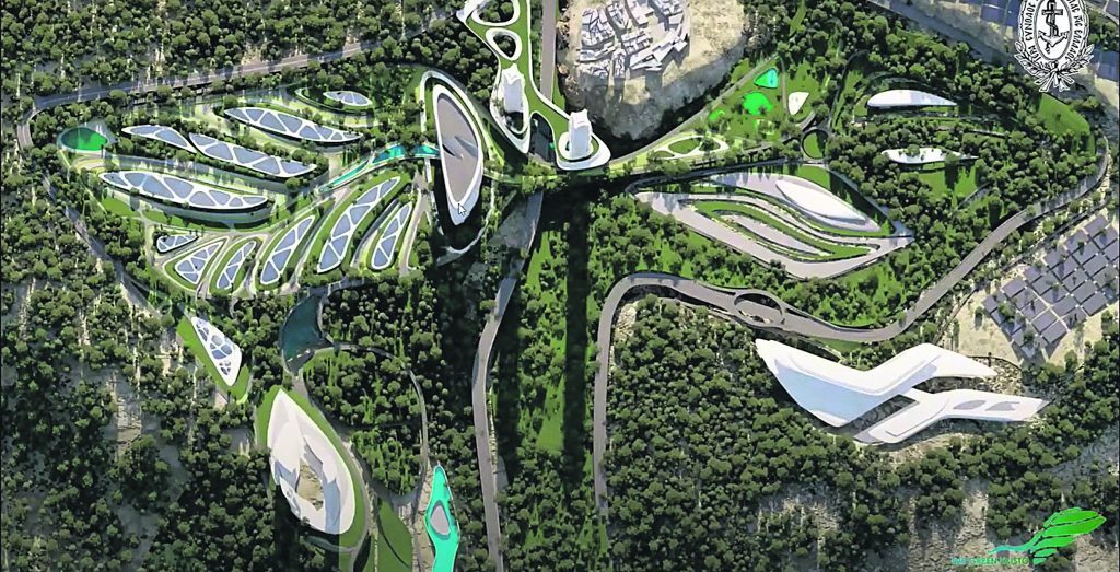 Παράλληλα, προτείνει την κατασκευή γραφείων διαχείρισης όλων των εταιριών -«δεν πρέπει να ξεχνάμε ότι θα δημιουργηθούν πάνω από 10.000 θέσεις εργασίας»-, τριών κτιρίων «με κοινωνικό πρόσημο», ξενοδοχείο, κατοικίες, νοσοκομείο, που «θα φιλοξενήσουν τις ανάγκες των πολιτών», καθώς και εμπορικά καταστήματα.