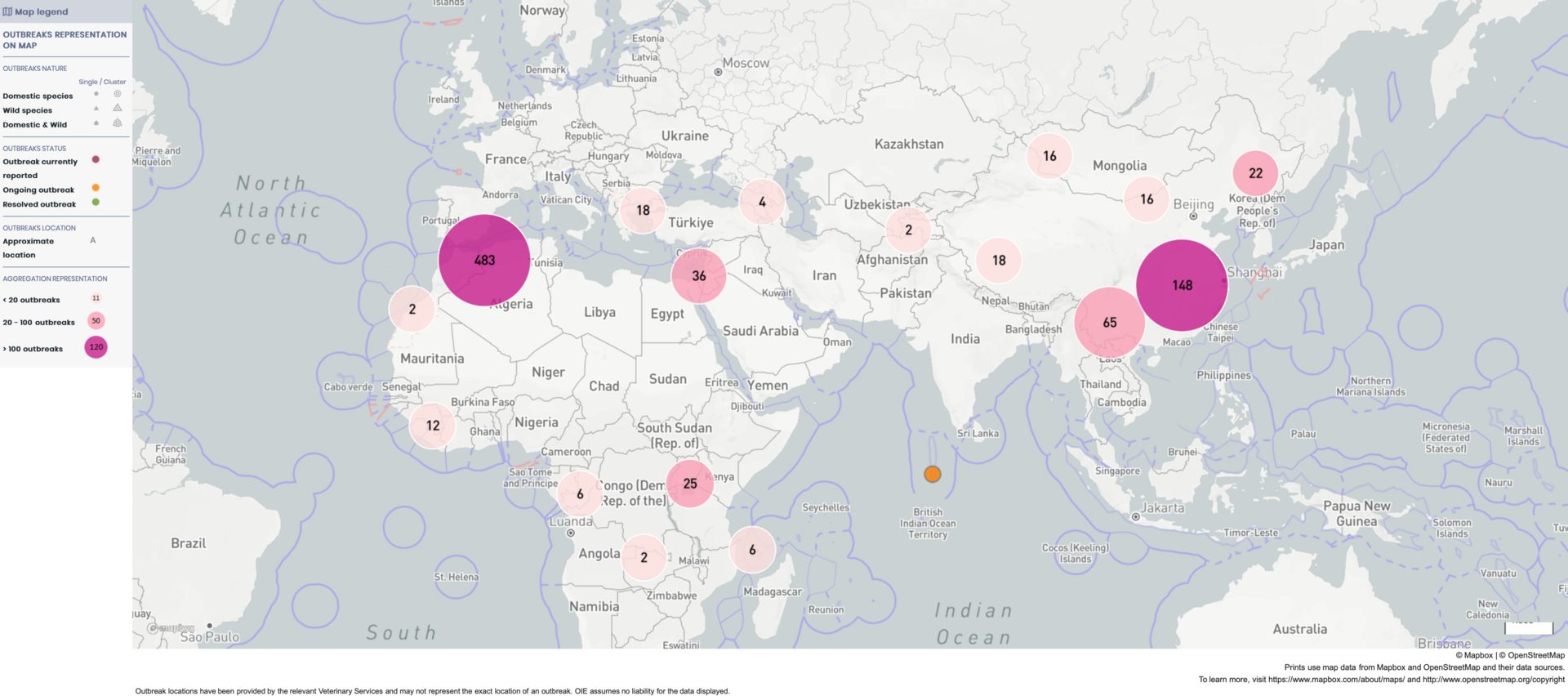 Ποια είναι τα στοιχεία του επιδημιολογικού χάρτη του Παγκόσμιου Συστήματος Πληροφοριών για την Υγεία των Ζώων;