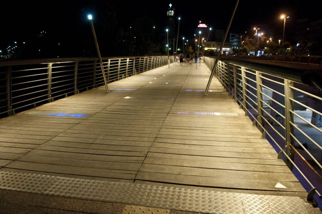 Επίσης, σημαντική θα είναι η παρέμβαση στην πεζογέφυρα Πηνειάδων Νυμφών ή γέφυρα Αρχιεπισκόπου Αλβανίας Αναστάσιου στη Λάρισα καθώς και στη σκάλα που οδηγεί στην κοίτη του Πηνειού. Ως γνωστόν, η πεζογέφυρα μήκους 95 μέτρων και πλάτος 5,50μ εξυπηρετεί μεγάλο όγκο πολιτών καθημερινά αφού αποτελεί για τους πεζούς το κύριο μέσο σύνδεσης του κέντρου της πόλης με το πάρκο του Αλκαζάρ και τη δυτική πλευρά της πόλης.