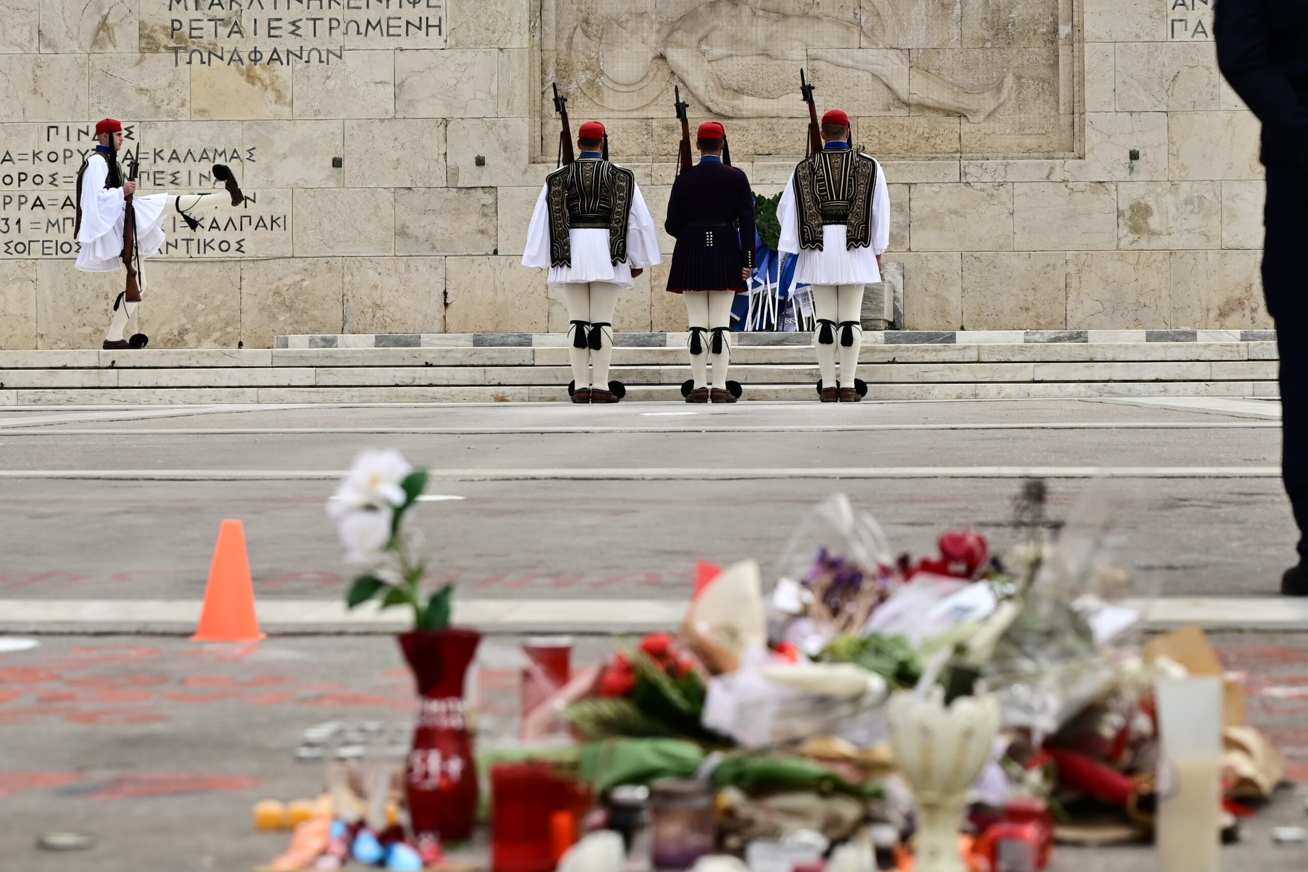 Πριν από την έναρξη της παρέλασης έγινε κατάθεση στεφάνων στο Μνημείο του Άγνωστου Στρατιώτη.