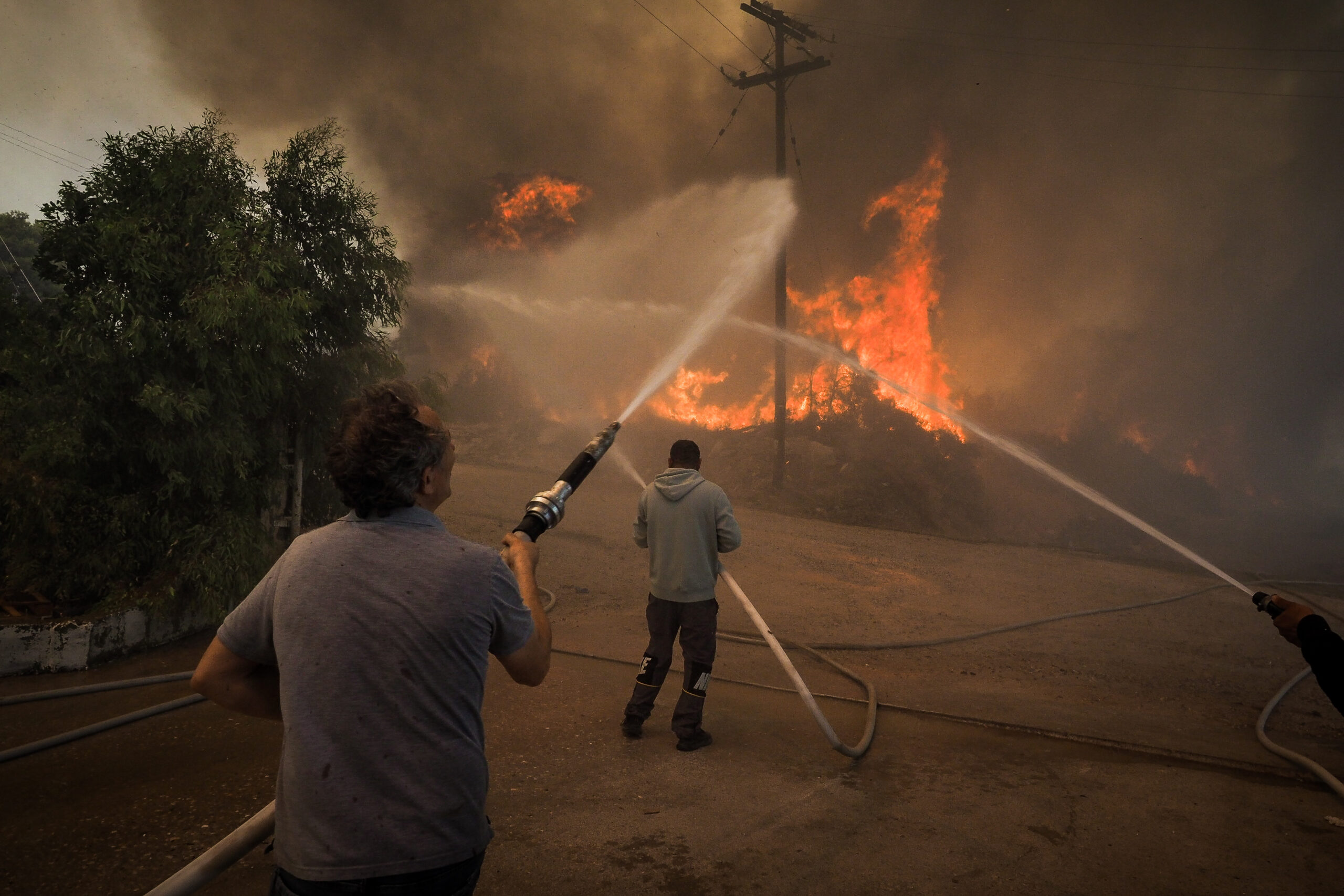 Εθελοντής πυροσβέστης κατέρρευσε την ώρα που ο ίδιος και οι συνάδελφοί του έδιναν μάχη στη φωτιά που μαίνεται ανεξέλεγκτη στο Κρυονέρι.