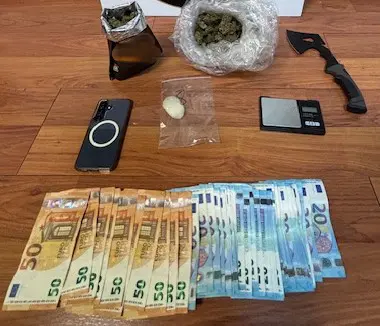 Σε έρευνα που πραγματοποιήθηκε στο σπίτι και στην κατοχή του, κατασχέθηκαν 309 γραμμάρια ακατέργαστης κάνναβης, μικροποσότητα κρυσταλλικής μεθαμφεταμίνης, ηλεκτρονική ζυγαριά ακριβείας, χρηματικό ποσό 1.405 ευρώ, 19 κάρτες SIM, καθώς και μαχαίρι και τσεκούρι.