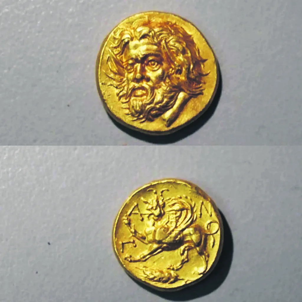 Εναντι 4.400.000 ελβετικών φράγκων είχε πωληθεί στο παρελθόν από τον οίκο δημοπρασιών Numismatica Ars Classica ένα αντίστοιχο νόμισμα με αυτό που εντόπισαν οι αστυνομικοί στο Παλαιό Φάληρο! Σε μια άλλη καταγραμμένη νόμιμη αγοραπωλησία, ένα άλλο νόμισμα ίδια εποχής κόστισε 6.000.000 δολάρια! Αρμόδιος αρχαιολόγος του Νομισματικού Μουσείου Αθηνών, στον οποίο επιδείχθηκε το εύρημα, το χαρακτήρισε «σπάνιο χρυσό νόμισμα-στατήρας Παντικαπαίου». Το νόμισμα φαίνεται να προέρχεται από την αρχαία πόλη του Παντικαπαίου, ελληνικής αποικίας της Ταυρικής Χερσονήσου της Μαύρης Θάλασσας (σημερινής Κριμαίας) και ανάγεται χρονικά στον 4ο π.Χ. αιώνα. Η σπανιότητά του έγκειται στο γεγονός ότι ο εικονιζόμενος «Πάνας» δεν είναι γυρισμένος στο προφίλ του αλλά απεικονίζεται η εμπρόσθια όψη του προσώπου του.