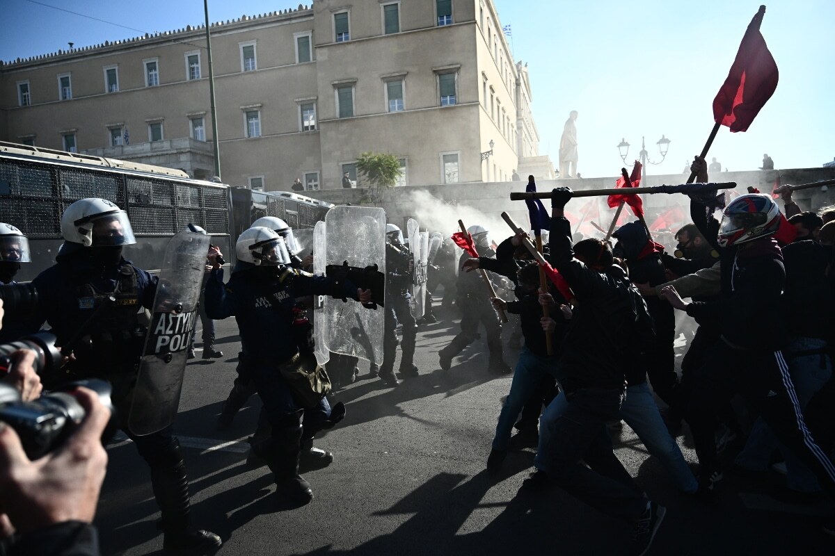 Η ένταση σημειώθηκε στα ανθοπωλεία της Βασ. Σοφίας όταν διαδηλωτές προσπάθησαν να περάσουν από τον φραγμό των ΜΑΤ. Οι αστυνομικές δυνάμεις έκαναν χρήση χημικών.