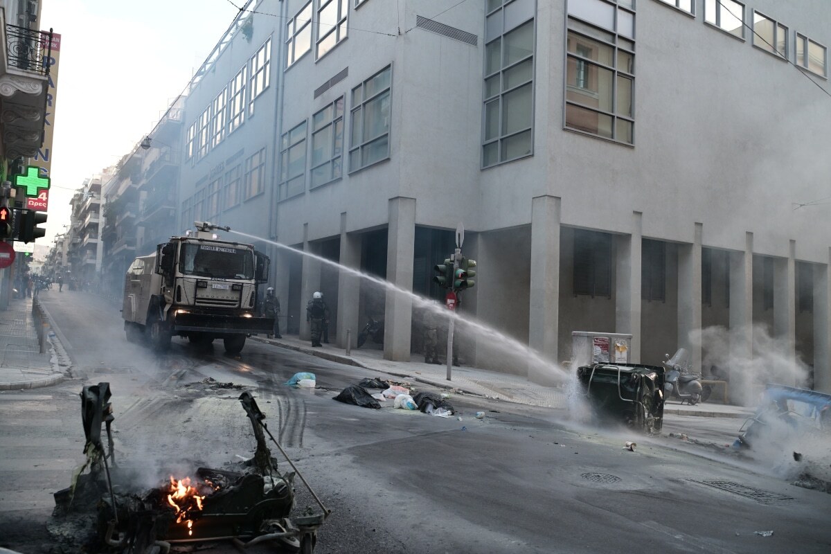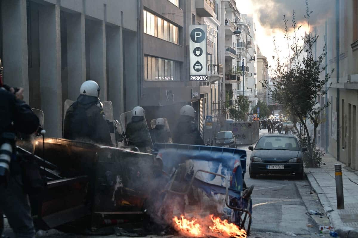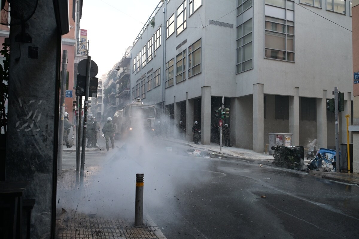 Συγκεκριμένα άγνωστοι πέταξαν μολότοφ προς τις αστυνομικές δυνάμεις, στη συμβολή των οδών Σόλωνος και Σίνα.
