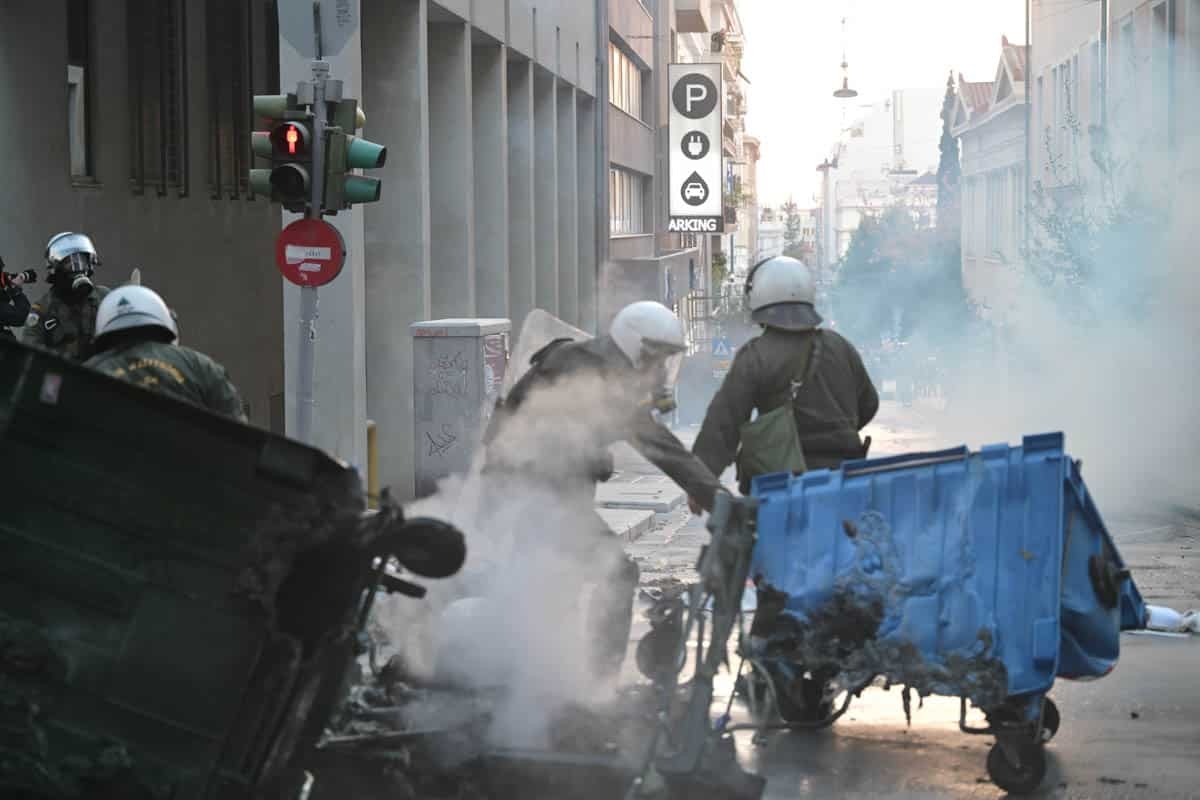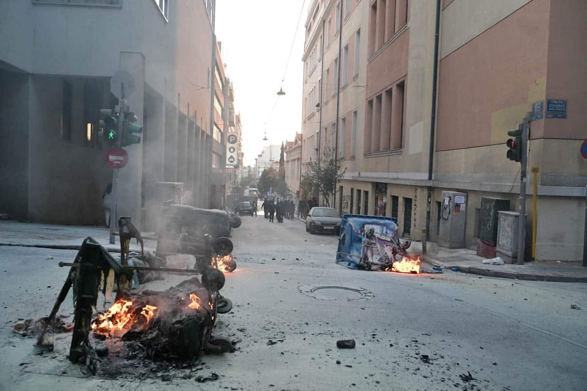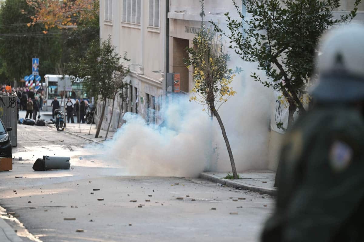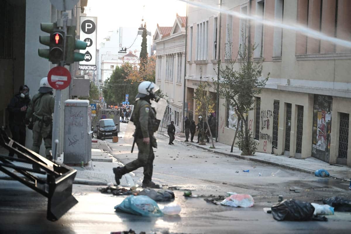 Συγκεκριμένα άγνωστοι πέταξαν μολότοφ προς τις αστυνομικές δυνάμεις, στη συμβολή των οδών Σόλωνος και Σίνα.