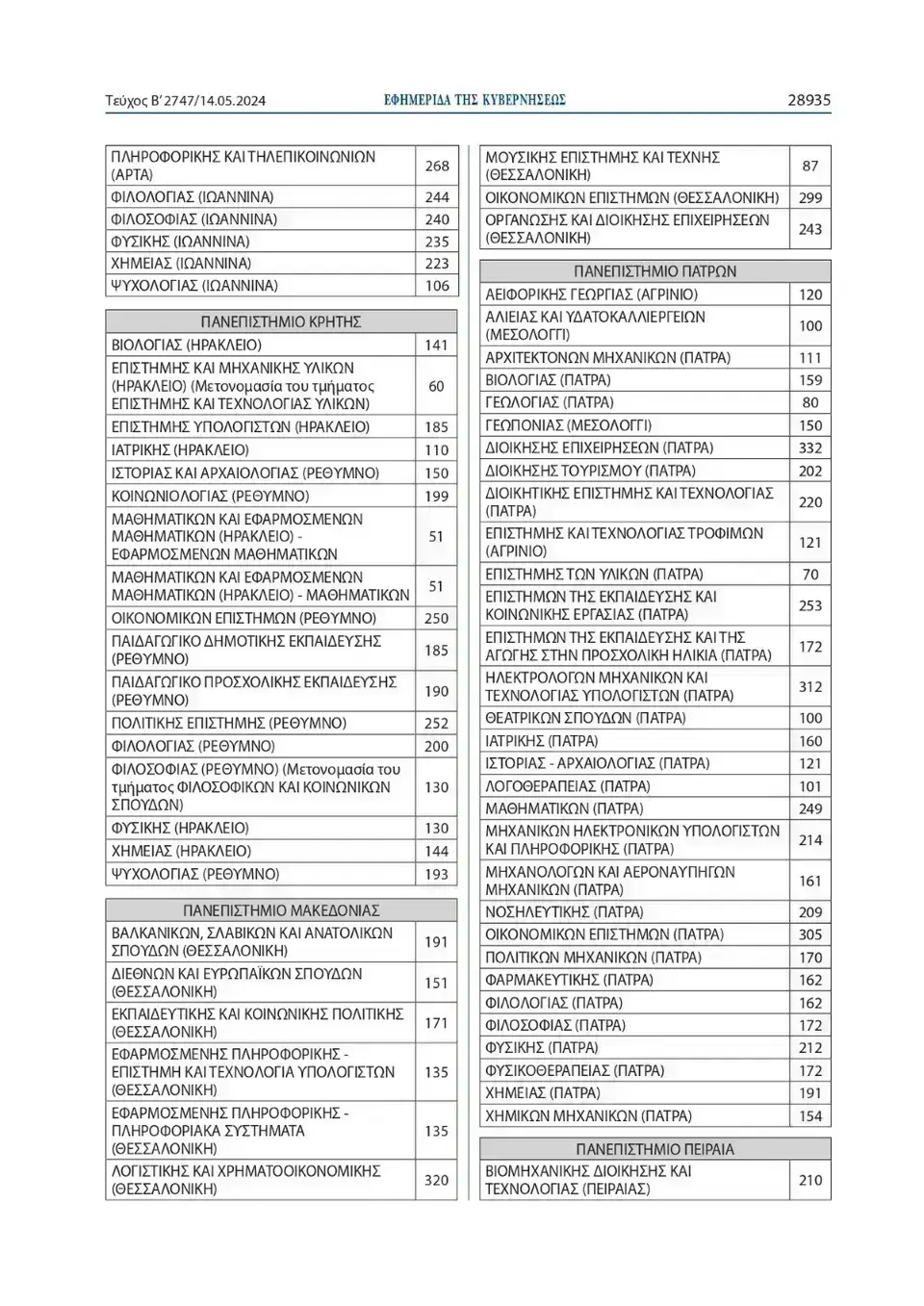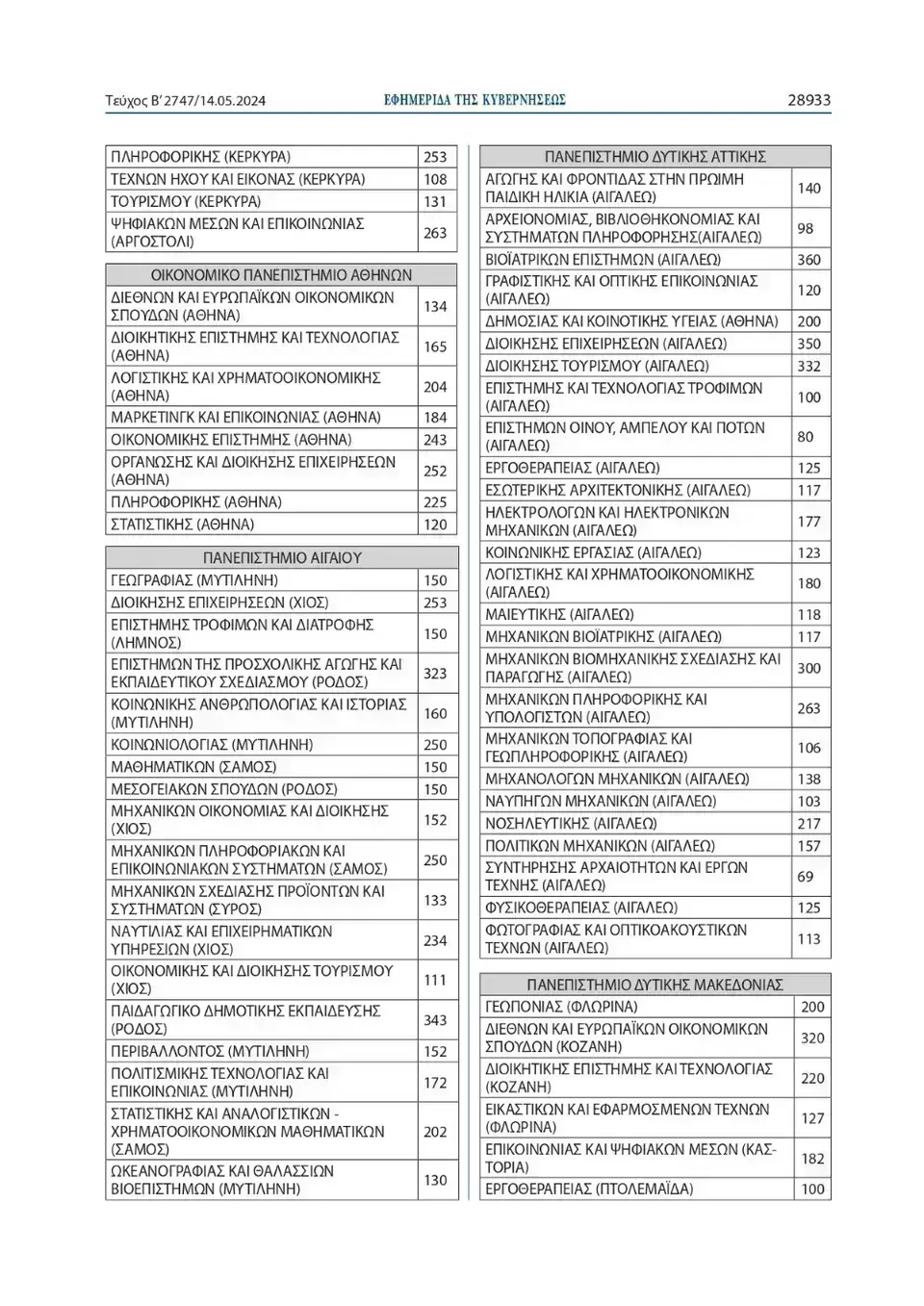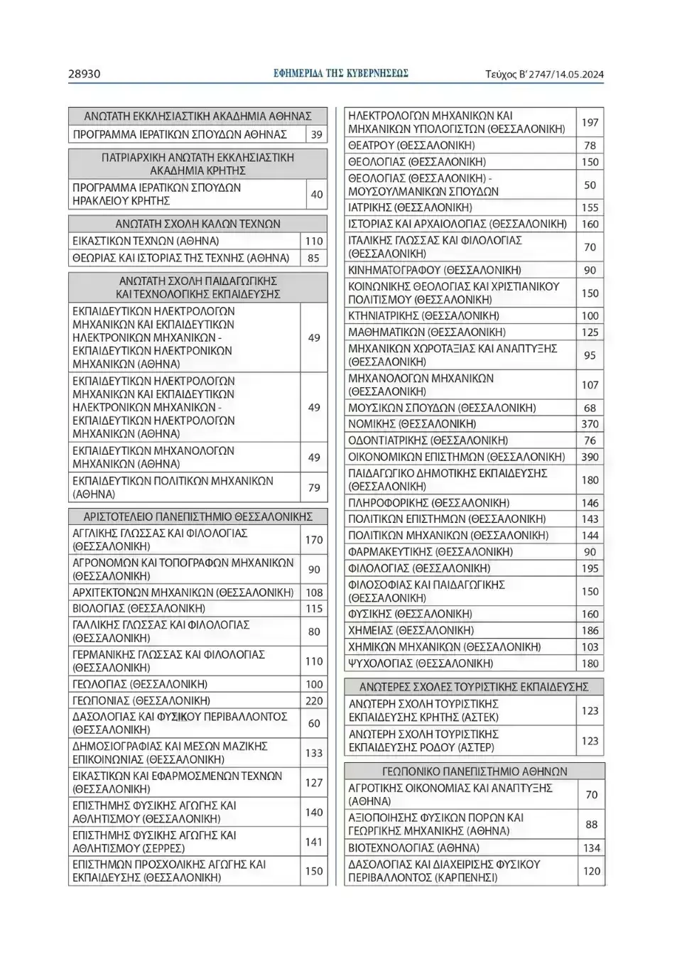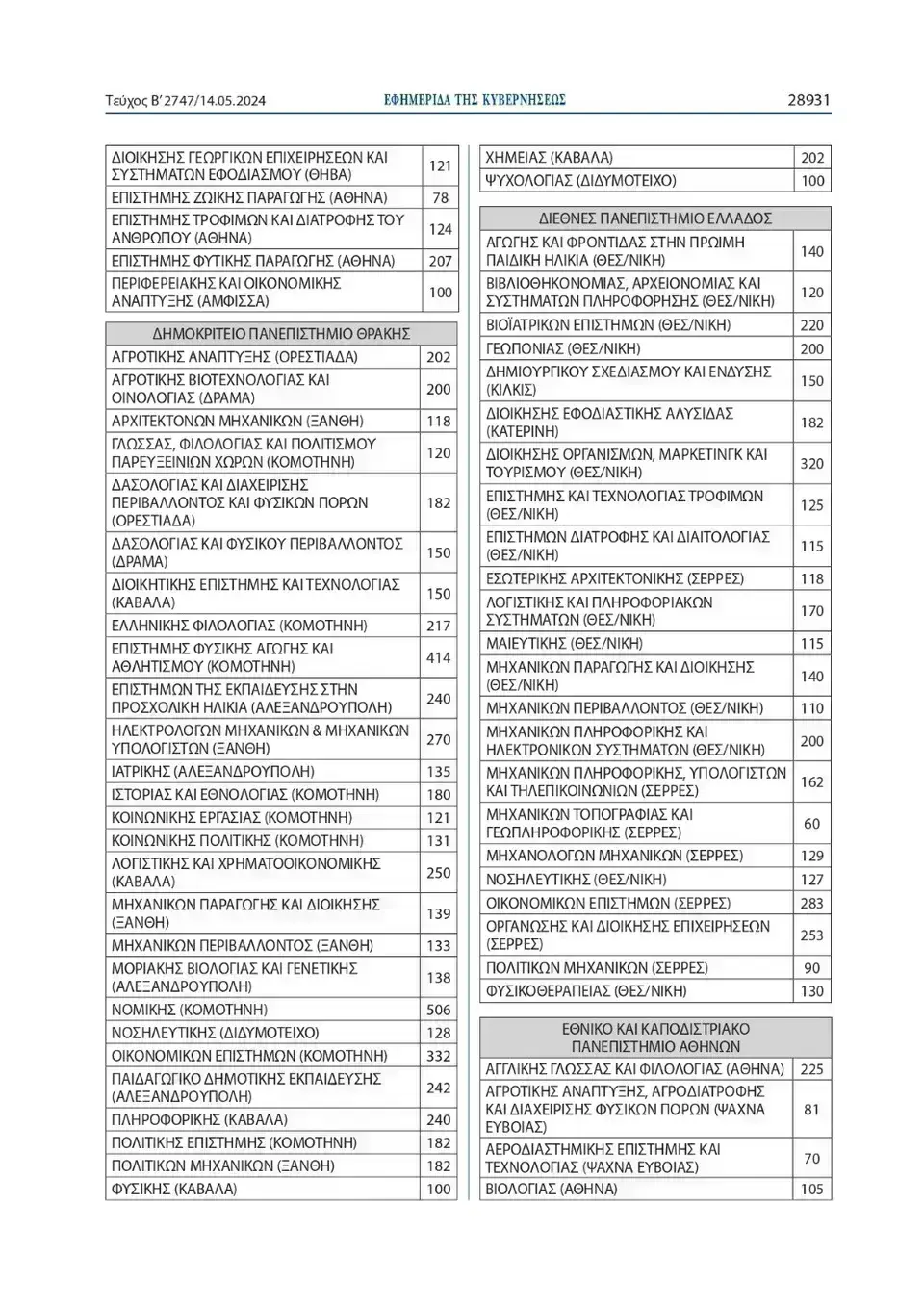 Όπως αναφέρει η Υπουργική Απόφαση, ο συνολικός αριθμός των εισακτέων για την επόμενη ακαδημαϊκή χρονιά θα ανέλθει σε 68.851, έναντι 68.574 θέσεων που ανήλθαν κατά το ακαδημαϊκό έτος 2023-2024.