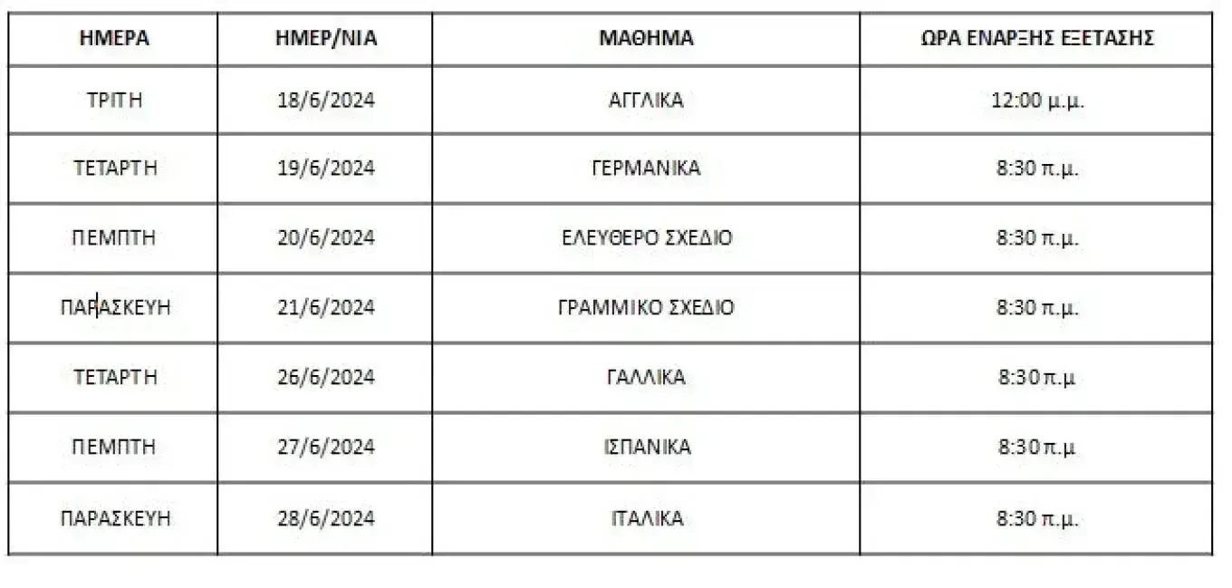 Από το Υπουργείο Παιδείας, Θρησκευμάτων και Αθλητισμού υπενθυμίζεται ότι οι εξετάσεις των ειδικών μαθημάτων για τους υποψηφίους Γενικών Λυκείων (ΓΕΛ) και Επαγγελματικών Λυκείων (ΕΠΑΛ), οι οποίοι έχουν δηλώσει εξέταση σε ένα ή περισσότερα ειδικά μαθήματα προκειμένου να αποκτήσουν δικαίωμα συμμετοχής στην επιλογή για εισαγωγή το τρέχον έτος σε Σχολή ή Τμήμα για το οποίο απαιτείται εξέταση σε ένα ή περισσότερα ειδικά μαθήματα, θα διενεργηθούν από 18 μέχρι και 28 Ιουνίου 2024, στα παρακάτω εξεταστικά κέντρα και με βάση το αναλυτικό πρόγραμμα εξετάσεων που έχει ανακοινωθεί.