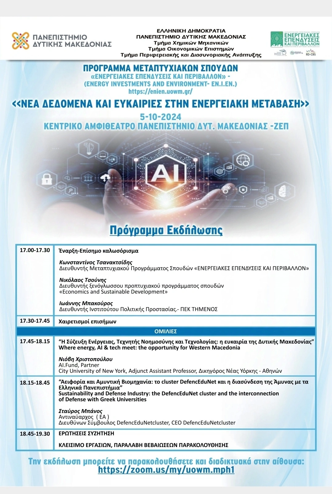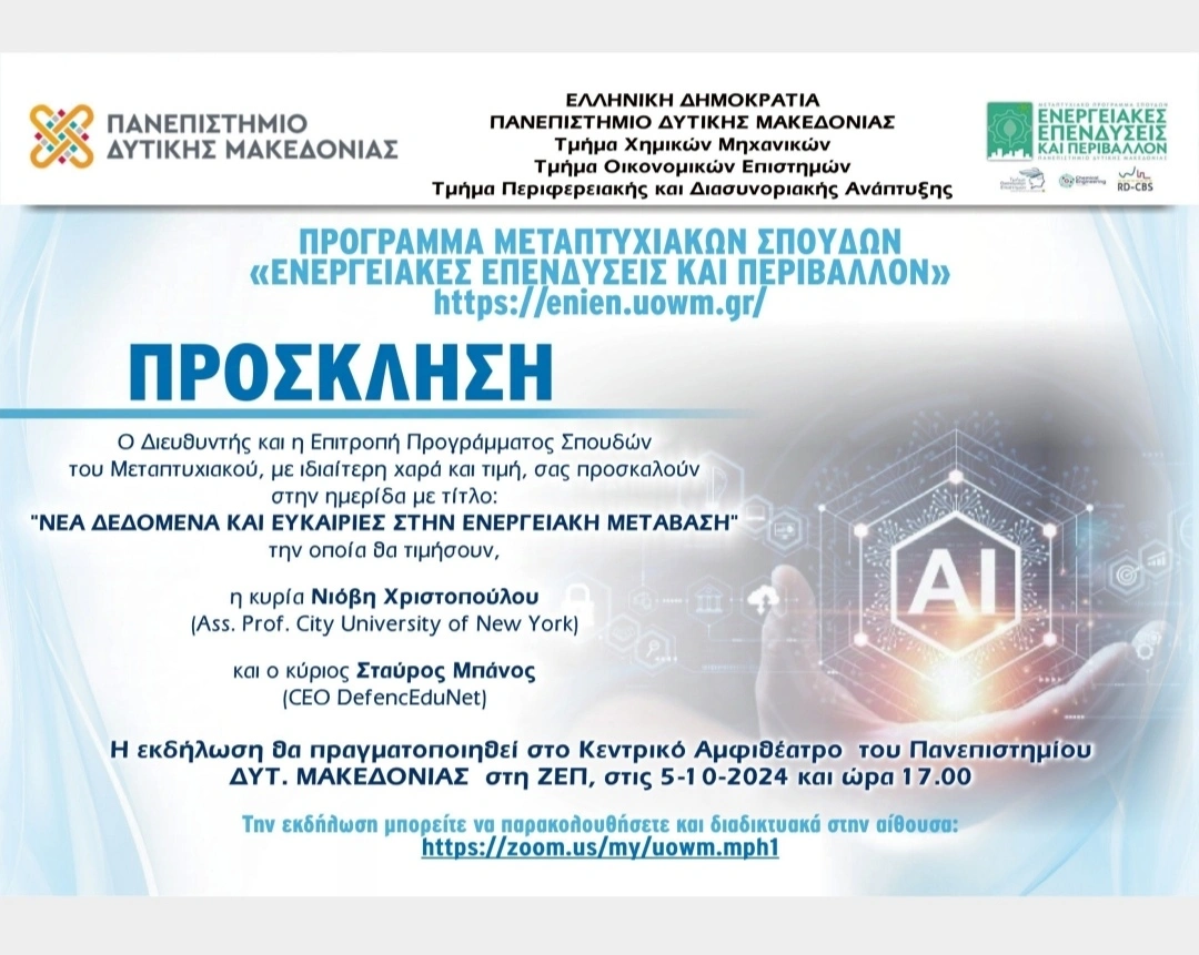 Οι εργασίες της εκδήλωσης θα φιλοξενηθούν στο κεντρικό αμφιθέατρο του πανεπιστημίου Δυτικής Μακεδονίας στη ΖΕΠ