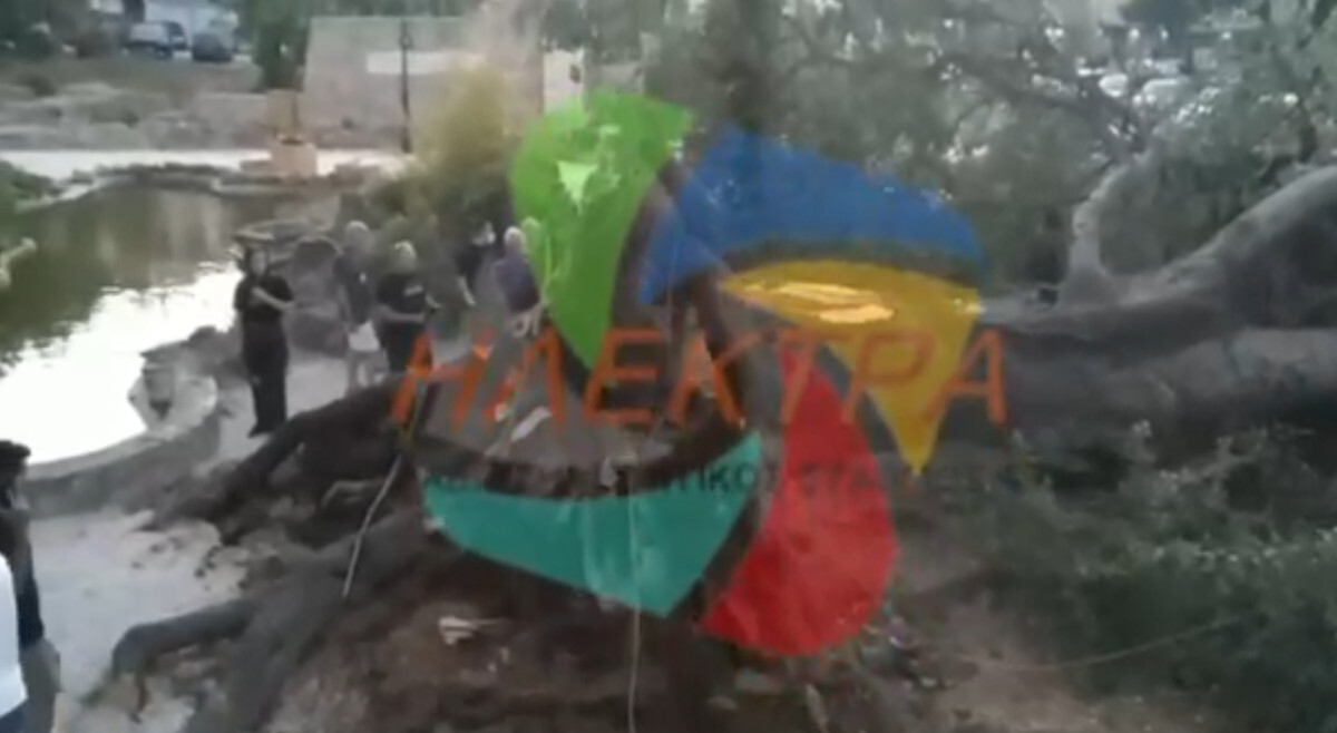Από την πτώση του δένδρου καταστράφηκαν πλήρως τραπέζια και καθίσματα και οι εικόνες που εξασφάλισε το ΗΛΕΚΤΡΑ δείχνουν το μέγεθος της καταστροφής, αλλά και εύκολα μπορεί να αντιληφθεί κανείς τι θα συνέβαινε εάν χτυπούσε άνθρωπο με την ορμή που κατέπεσε.
