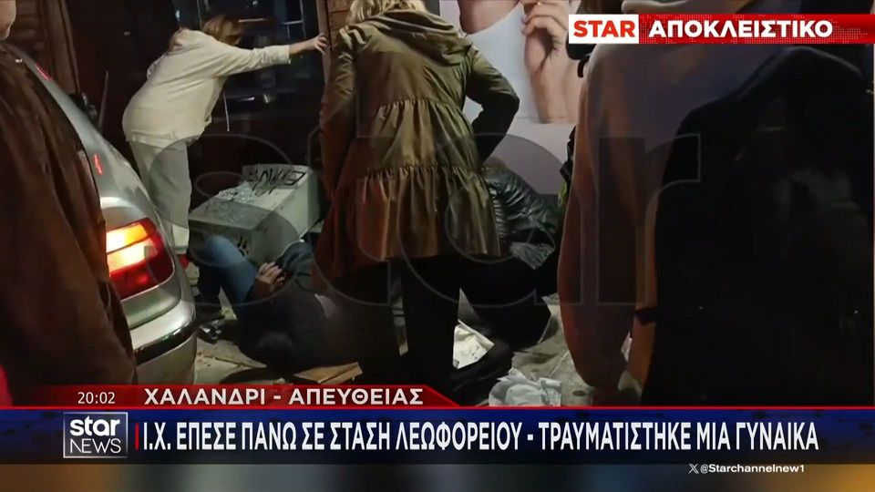 Στη συνέχεια το ΙΧ υ κατέληξε πάνω στη στάση, παρέσυρε την κολώνα της, τραυματίζοντας 55χρονη γυναίκα που περίμενε το λεωφορείο, για να καρφωθεί τελικά σε τζαμαρία καταστήματος.