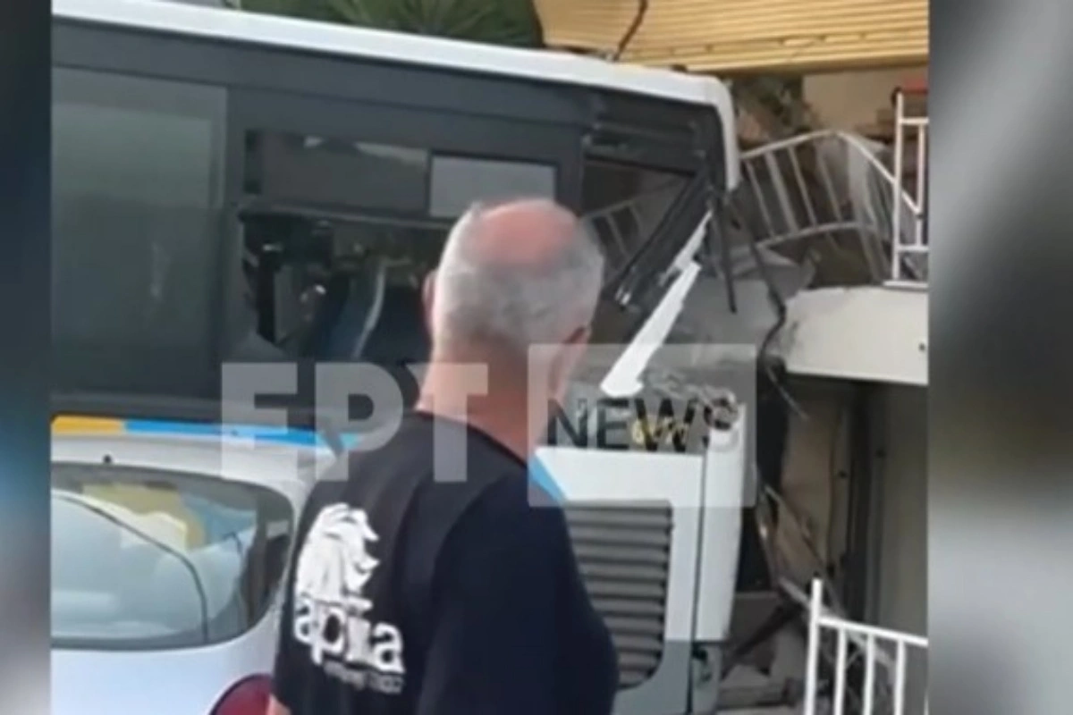 «Προφανώς λύθηκε το χειρόφρενο από ότι μας είπε ο οδηγός. Στην αρχή νόμιζα ότι ήταν σεισμός, πολύ δυνατός ήχος και τρανταχτήκαμε πάρα πολύ και βγαίνουμε έξω και βλέπουμε το λεωφορείο ότι είχε πέσει και στο αμάξι και στο σπίτι», συμπλήρωσε.