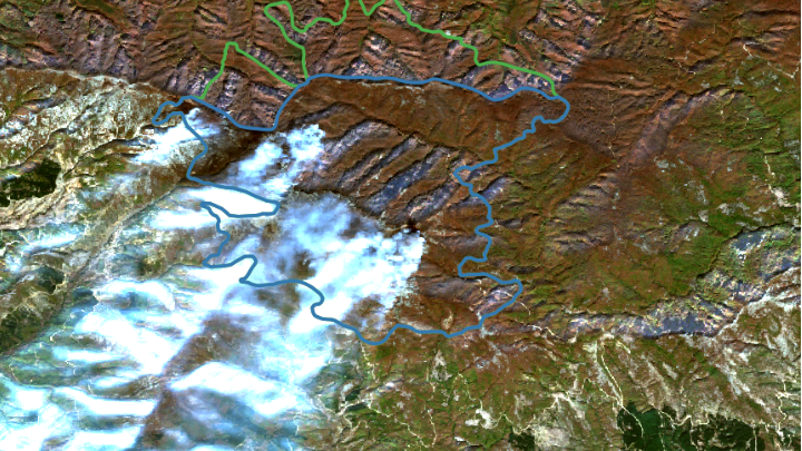Στο συνημμένο αρχείο εικόνας που παρουσιάζει το ΑΠΕ-ΜΠΕ διακρίνεται η περίμετρος της καμένης έκτασης που αντιστοιχεί στην Ελλάδα (μπλε περίγραμμα) και στη Βουλγαρία (πράσινο περίγραμμα), σύμφωνα με τα διανυσματικά δεδομένα του Copernicus EMS στις 5/11/2022.