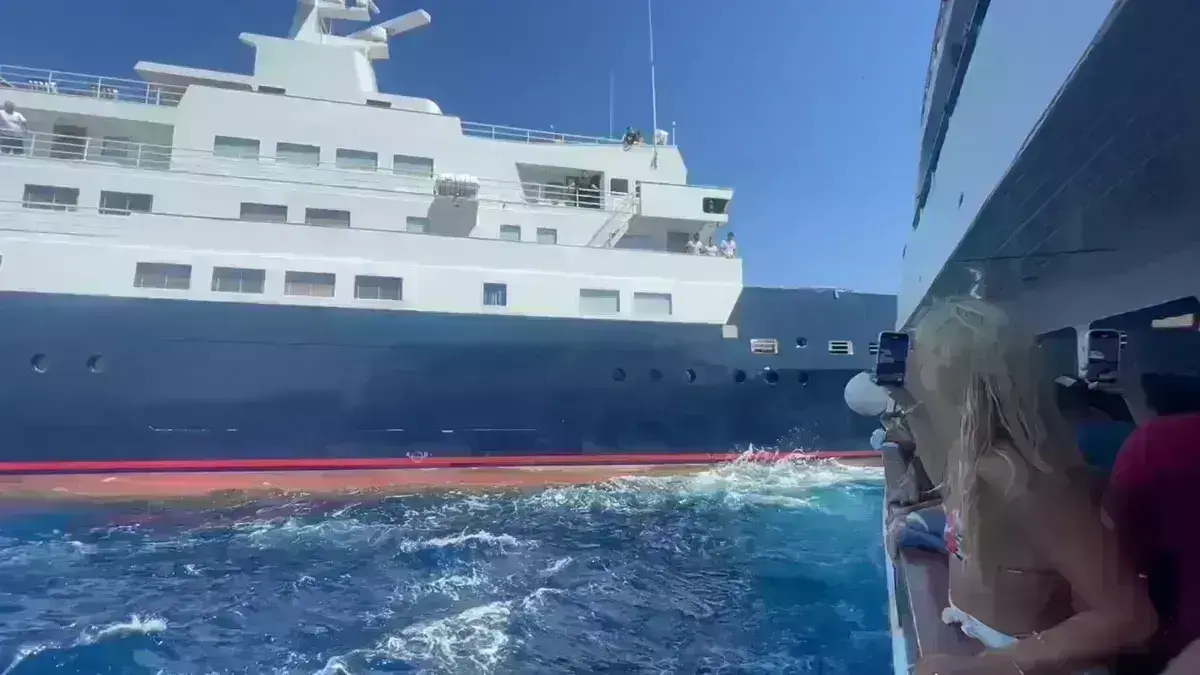 Συγκεκριμένα η θαλαμηγός, κινείτο προς πλοίο που ήταν γεμάτο με επιβάτες, δίχως να ελαττώσει ταχύτητα ή να αλλάξει πορεία, προκαλώντας μεγάλη αναστάτωση. Σε βίντεο που τράβηξε επιβάτης του τουριστικού σκάφους καταγράφονται οι αγωνιώδεις στιγμές, με το ατύχημα να αποφεύγεται κυριολεκτικά τελευταία στιγμή.