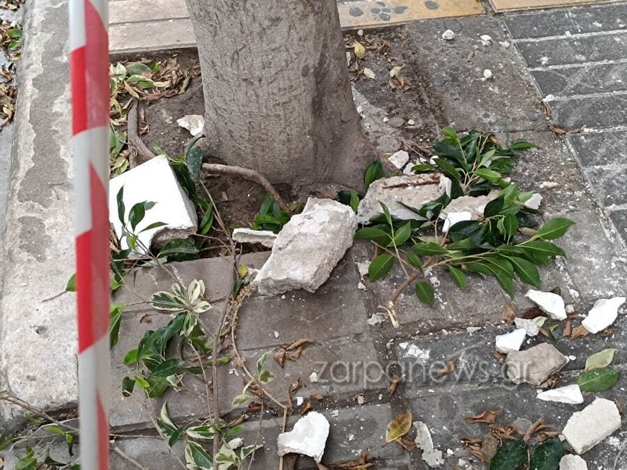 Όπως φαίνεται στις φωτογραφίες, δεν ήταν σοβάς αλλά επρόκειτο για αρκετά μεγάλα κομμάτια μπετόν που αποκολλήθηκαν από μπαλκόνι, τα οποία αν έπεφταν στο κεφάλι κάποιου, θα μπορούσαν να είχαν αποβεί μοιραία.