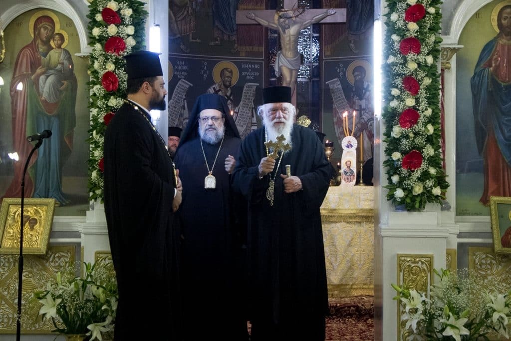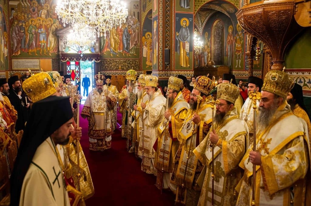 Κατά τον Όρθρο και την πολυαρχιερατική θεία λειτουργία που έγιναν σήμερα το πρωϊ προεξήρχε ο εορτάζων Μητροπολίτης Μεσσηνίας κ. Χρυσόστομος, συλλειτουργούντων των Σεβ. Μητροπολιτών Δημητριάδος κ. Ιγνατίου, Πειραιώς κ. Σεραφείμ, Κοζάνης κ. Παύλου, Άρτης κ. Καλλινίκου, Ιλίου κ. Αθηναγόρου, Κηφισίας κ. Κυρίλλου, Θεσσαλιώτιδος κ. Τιμοθέου, Μεγάρων κ. Κωνσταντίνου, Καρθαγένης κ. Μελετίου, Πολυανής κ. Βαρθολομαίου, Θήρας κ. Αμφιλοχίου, Αιτωλίας κ. Δαμασκηνού, Ζηνουπόλεως κ. Ιακώβου και του Θεοφιλ. Επισκόπου Αμφιπόλεως κ. Χριστοφόρου.