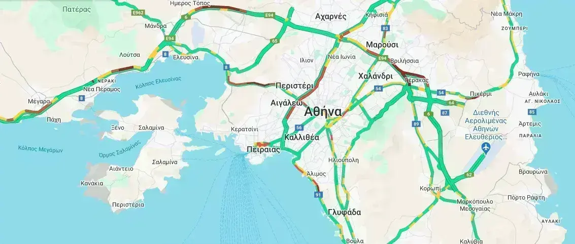Ειδικότερα, καθυστερήσεις παρατηρούνται στο ρεύμα προς Ελευσίνα: άνω των 30′ από Ανθούσα έως Μεταμόρφωση (έξοδο για Λαμία), 20′-25′ από Αγία Παρασκευή έως Μεταμόρφωση (έξοδο για Λαμία), 15′-20′ από Ασπρόπυργο έως Μαγούλα.