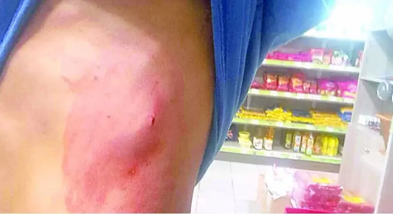 Μπήκαν μέσα και αυτός που κρατούσε τη λεπίδα του κατάφερε ένα χτύπημα στα πλευρά, λίγο πιο πάνω από το συκώτι. Ευτυχώς δεν ήταν βαθύ και του προκάλεσε αμυχή με μικρή αιμορραγία.