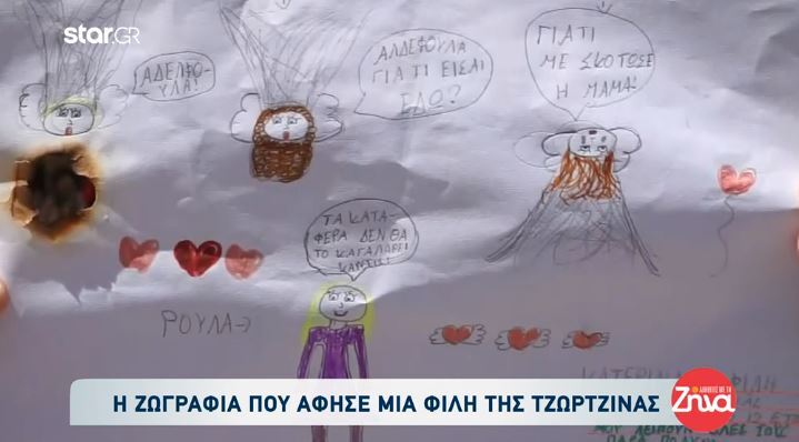 Αυτή τη φορά, μια συμμαθήτρια της Τζωρτζίνας επισκέφτηκε το σπίτι και άφησε μια ζωγραφιά. Σε αυτή απεικονίζονται και τα τρία παιδιά ως αγγελάκια, αλλά και την μητέρα τους, Ρούλα Πισπιρίγκου.