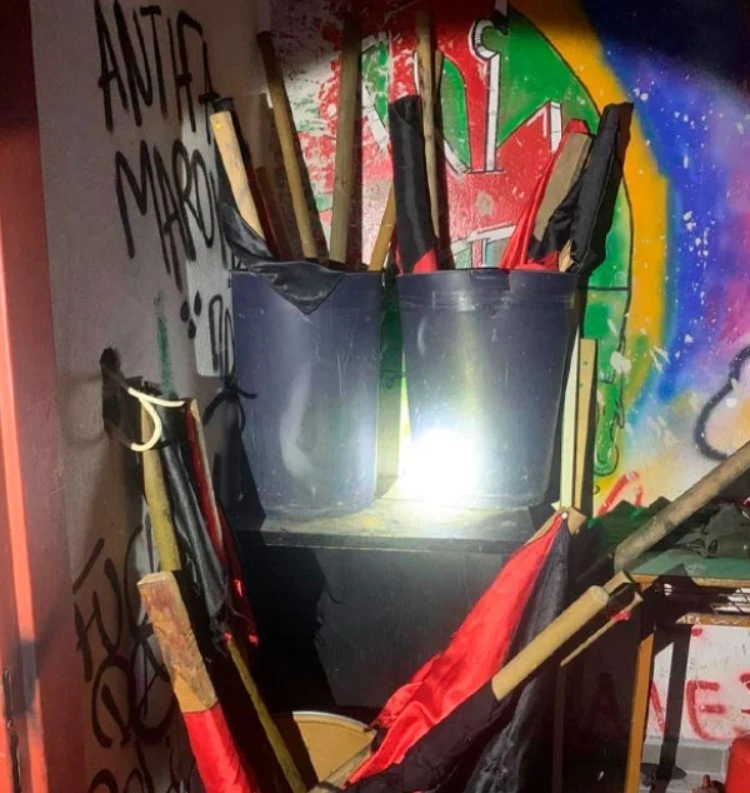 Στο πρώην παράρτημα του Πανεπιστημίου Πατρών βρέθηκαν κράνη, ρόπαλα, αυτοσχέδιες ασπίδες, και σακούλες με πέτρες.
