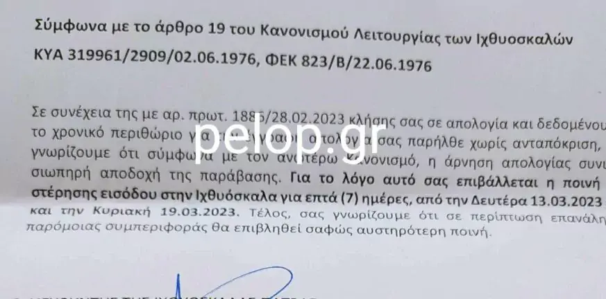 Ο εν λόγω οδηγός εκλήθη σε απολογία, αλλά δεν πήγε και έτσι οι υπεύθυνοι της Ιχθυόσκαλας Πατρών αποφάσισαν να μην του επιτρέπουν την είσοδο από τη Δευτέρα (13/3), όπως αναφέρει η ιστοσελίδα Pelop.gr.