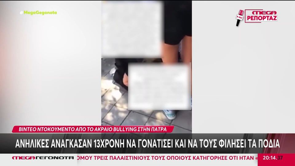 Στο σχετικό βίντεο που αναρτήθηκε φαίνονται τα τέσσερα κορίτσια που πλησίασαν την 13χρονη έξω από Γυμνάσιο της Πάτρας και την ανάγκασαν να σκύψει και να τους φιλήσει τα πόδια, ενώ την απείλησαν και την εξύβρισαν βιντεοσκοπώντας με κινητό τηλέφωνο τις πράξεις τους, σύμφωνα με την ΕΛ.ΑΣ. Οι ανήλικες, συνελήφθησαν για παράνομη βία, παράβαση της νομοθεσίας περί προσωπικών δεδομένων, απειλή και εξύβριση, ενώ δικογραφία σχηματίστηκε και σε βάρος των γονέων τους για παραμέληση εποπτείας ανηλίκων.