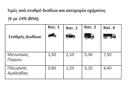 Οι τιμές των διοδίων