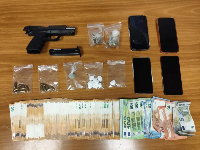 Συνολικά κατασχέθηκαν ναρκωτικές ουσίες, όπλο, πυρομαχικά, το χρηματικό ποσό των 12.875 ευρώ και κινητά τηλέφωνα. Ο 46χρονος έχει απασχολήσει και στο παρελθόν τις Αρχές για σοβαρές υποθέσεις, μεταξύ των οποίων ναρκωτικά, όπλα, κλοπές και ενδοοικογενειακή βία.