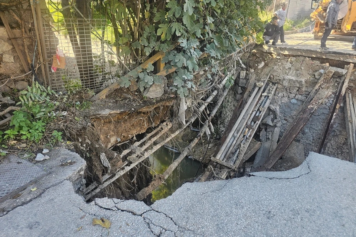 Στο σημείο, μετά την κατάρρευση, εμφανίστηκε μια τεράστια τρύπα.