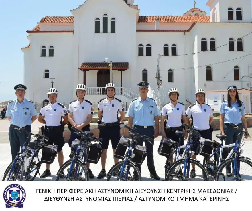 Η αστυνόμευση με ποδήλατα εφαρμόζεται τα τελευταία χρόνια στην Πιερία, έχοντας θετική ανταπόκριση και συμβάλλοντας στην βελτίωση των παρεχόμενων υπηρεσιών προς την τοπική κοινωνία και τους τουρίστες της περιοχής, όπως μεταδίδει το ΑΠΕ-ΜΠΕ.