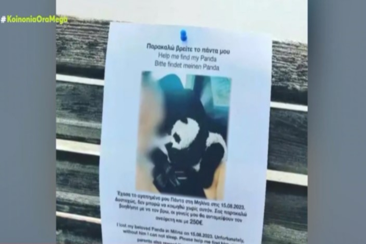 «Παρακαλώ, βρείτε το πάντα μου. Έχασα το αγαπημένο μου πάντα στη Μηλίνα στις 15.08.2023. Δυστυχώς, δεν μπορώ να κοιμηθώ, χωρίς αυτόν. Σας παρακαλώ, βοηθήστε με να τον βρω. Οι γονείς μου θα ανταμείψουν τον ανεύρετη και με 250 ευρώ».