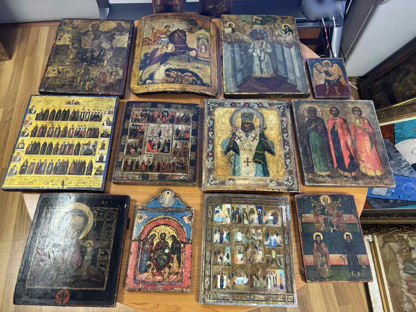 Επτά αντικείμενα (πέντε έργα Παρθένη και δύο εικόνες), με εκτιμώμενη τιμή πώλησης 150.000 ευρώ.