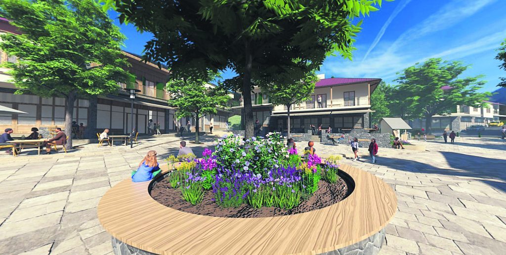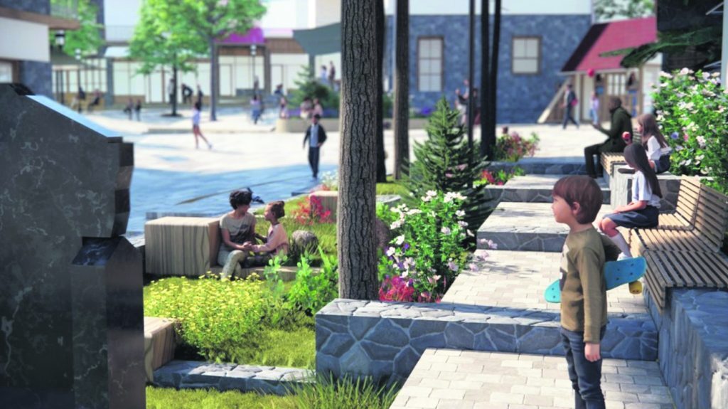 Επομένως, μέσα στον σχεδιασμό περιλαμβάνεται ακόμη η κατασκευή αμφιθεάτρου για πολιτιστικές δράσεις, αρμονικά συνδεδεμένο με το υπάρχον κοινοτικό κατάστημα της πλατείας, αλλά και η δημιουργία προσβάσιμου χώρου αναψυχής στην είσοδό της, που θα λειτουργεί ως ο Κήπος της Σαμαρίνας, με καθιστικούς χώρους, σκίαση και πολύ πράσινο.