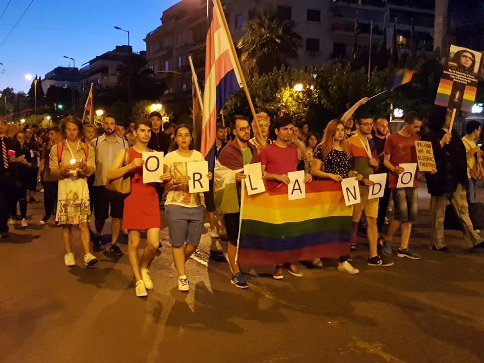Κρατώντας κεριά, αλλά και σημαίες με το Ουράνιο Τόξο πολλά άτομα ΛΟΑΤΚΙ (Λεσβίες, Ομοφυλόφιλοι, Αμφισεξουαλικοί, Τρανσέξουαλ, Κουήρ, Ίντερσεξ), διαδήλωσαν με τον δικό τους τρόπο για να ξορκίσουν το μακελειό που στοίχισε την ζωή 50 ατόμων και σκόρπισε τον τρόμο.
