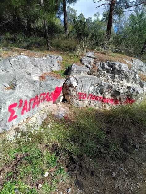Λένε ότι Φλεβάρης είναι ο πιο ερωτικός μήνας του χρόνου… Αλλά μάλλον, το ζευγάρι από το Βόλο το «παράκανε» και με ένα κόκκινο σπρέι γράφτηκαν λόγια αγάπης και αφοσίωσης που κανείς θα τα ζήλευε, αν δεν προκαλούσαν ρύπανση στο φυσικό περιβάλλον του λόφου.