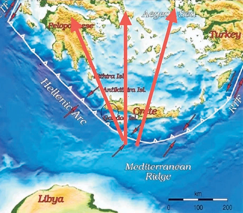 - Η περιοχή νότια της Κρήτης, για την οποία δεν είναι γνωστή η εκδήλωση κάποιου ισχυρού σεισμού ή τσουνάμι, όμως οι επιστήμονες την κατατάσσουν στις επίφοβες περιοχές.
