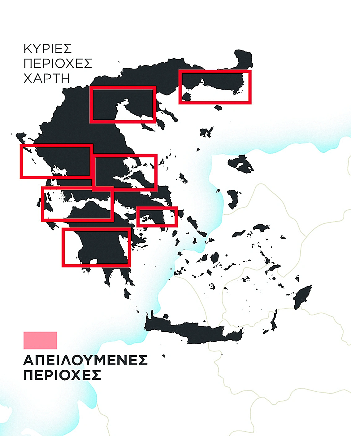 Αν οι πιο ακραίες προβλέψεις των επιστημόνων επιβεβαιωθούν και η παγκόσμια στάθμη της θάλασσας αυξηθεί κατά 1,9 μέτρα, τότε οι προαναφερόμενες και απεικονιζόμενες στον χάρτη ελληνικές περιοχές θα βυθιστούν κάτω από το νερό!