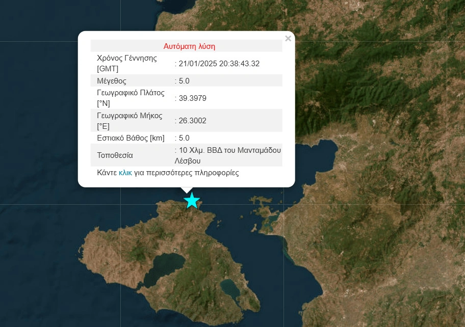 Σύμφωνα με την αναθεωρημένη λύση του Γεωδυναμικού Ινστιτούτου, ο σεισμός είχε 14,6 χλμ εστιακό βάθος και σημειώθηκε 8 χιλιόμετρα Βορειοανατολικά της Μήθυμνας Λέσβου. Σύμφωνα με αναφορές στην Τουρκία ο σεισμός ήταν μεγέθους 5,2 Ρίχτερ, ενώ το Ευρωμεσογειακό δίνει 5 Ρίχτερ.