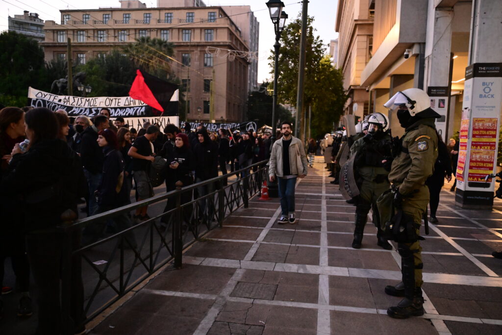 Φοιτητικοί σύλλογοι με κεντρικά συνθήματα «Το Πολυτεχνείο ζει σε αγώνες μας καλεί» και «Λευτεριά στην Παλαιστίνη», φορείς, ο ΣΥΡΙΖΑ-ΠΣ, το ΠΑΣΟΚ-Κίνημα Αλλαγής, η Πλεύση Ελευθερίας, η Νέα Αριστερά, το ΜέΡΑ25, κόμματα κι οργανώσεις της εξωκοινοβουλευτικής Αριστεράς, εργατικά σωματεία και συλλογικότητες του αντιεξουσιαστικού χώρου συγκεντρώθηκαν σε Ομόνοια και Πανεπιστήμιο και κατευθύνθηκαν προς την αμερικανική πρεσβεία και στη συνέχεια στην πρεσβεία του Ισραήλ.