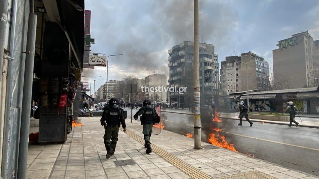 Την ίδια ώρα επεισόδια ξέσπασαν και λίγο πιο πίσω επί της οδού Εγνατίας στο ύψος του Βαρδάρη.