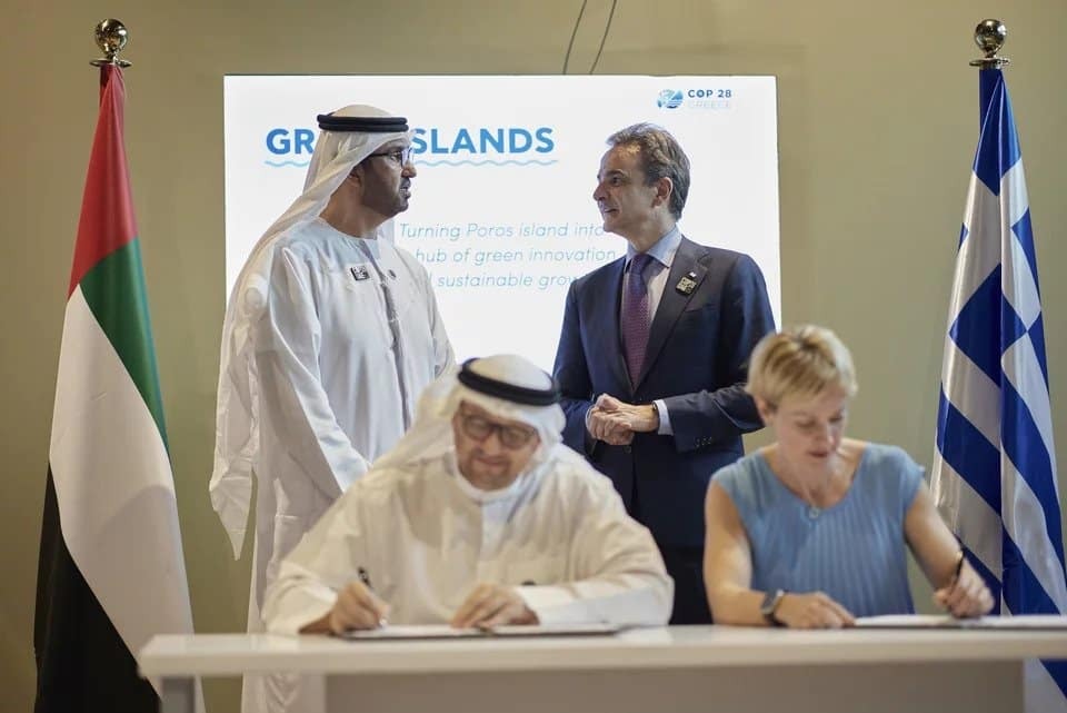 Είμαι πολύ χαρούμενος που ο όμορφος Πόρος εντάσσεται στο πρόγραμμα GR-eco Islands. Πιστεύω πολύ στο πρόγραμμα αυτό και χαιρόμαστε ιδιαίτερα για τη σημερινή υπογραφή συμφωνίας μεταξύ της κυβέρνησης και της Masdar, ενός παγκόσμιου ηγέτη στις ανανεώσιμες πηγές ενέργειας. #COP28 pic.twitter.com/n0uSpiciKS