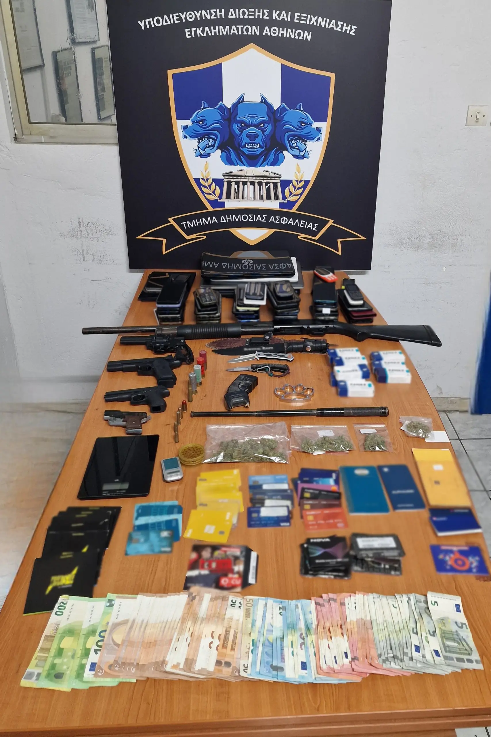 Στο πλαίσιο της ευρείας κλίμακας επιχείρησης που έλαβε χώρα πρωινές ώρες της 26-11-2024, και οδήγησε στη σύλληψη -25- μελών, κατασχέθηκαν μεταξύ άλλων πλήθος τραπεζικών καρτών, τραπεζικών βιβλιαρίων, ηλεκτρονικών συσκευών και τηλεφωνικών συνδέσεων, οπλισμός, πιστόλι φωτοβολίδων, tazer, πλήθος οχημάτων, χρηματικό ποσό και ποσότητες ναρκωτικών ουσιών.