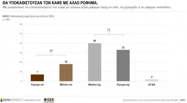 Για το 73% όσων πίνουν καφέ, η συνήθεια του καφέ είναι σταθερή και δεν υποκαθίσταται με την κατανάλωση άλλου ροφήματος όπως το τσάι ή το χαμομήλι. Η συνήθεια αυτή, ειδικά εκτός σπιτιού, δεν επηρεάστηκε ούτε από τις αλλαγές και τους περιορισμούς που έφερε η πανδημία στην καθημερινότητα των καταναλωτών. Είναι χαρακτηριστικό ότι το 53% των ερωτηθέντων δεν έχει σκεφτεί ποτέ να κόψει τον καφέ. Ωστόσο, ένα ποσοστό 17% θα το έκανε για λόγους υγείας, ποσοστό 14% για οικονομικούς λόγους και το 13% επειδή ο καφές του προκαλεί αϋπνία.