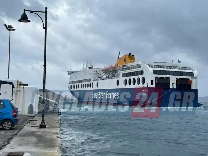 Νέο πρόβλημα για το πλοίο Blue Star 1 στο λιμάνι της Νάξου, έπειτα από την χθεσινή πρόσκρουση στο λιμένα του νησιού, σήμερα το πλοίο αδυνατεί να δέσει στο λιμάνι λόγω των θυελλωδών ανέμων που πνέουν στην περιοχή.