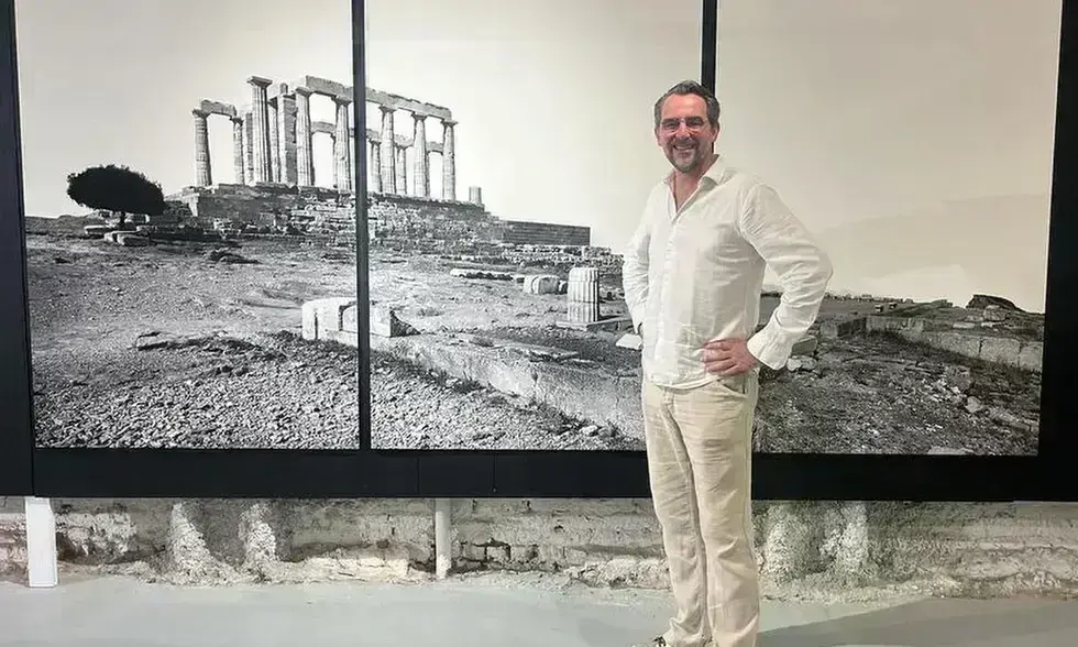 Με τη μοναδική μέθοδο του καλλιτέχνη να εκτυπώνει φωτογραφίες απευθείας σε μάρμαρο, ο θεατής βυθίζεται στην ελληνική ουσία της γλυπτικής, της άμμου, της θάλασσας και του φωτός, εγκλωβισμένη σε έναν διαχρονικό καταρράκτη.