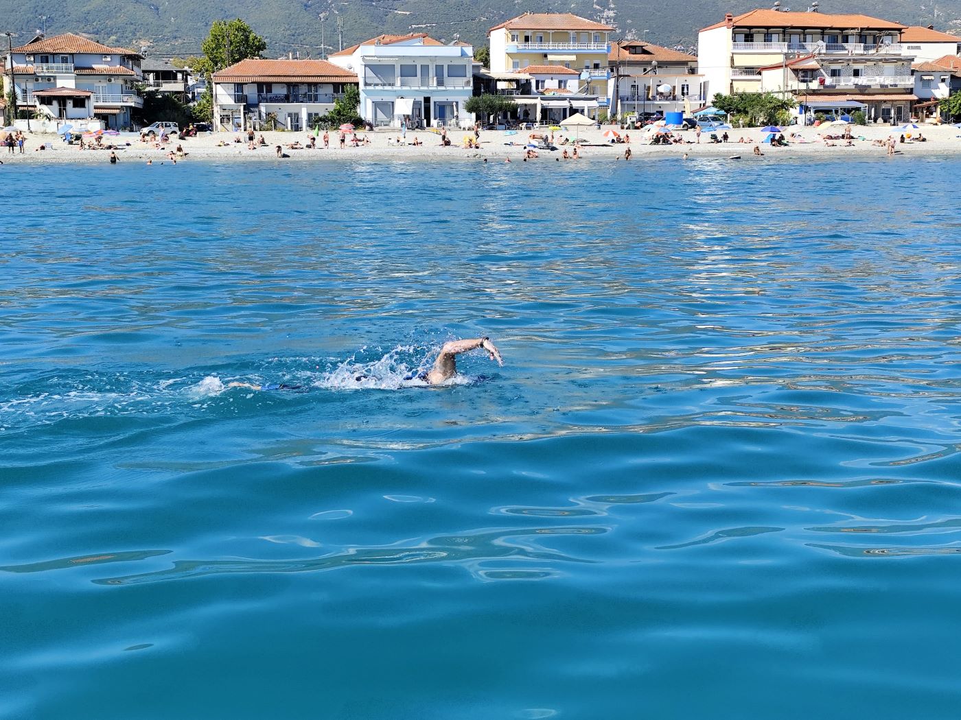 Ο λόγος για τον προπονητή κολύμβησης του Κολυμβητικού Ομίλου Κατερίνης «Ποσειδών – Swimming», Γιώργο Παπαδόπουλο, που «έσκισε» τα κύματα σε μια συνολική διαδρομή 810 λεπτών, η οποία ανέδειξε το φυσικό κάλλος της περιοχής, αλλά και τη συνεχή ναυαγοσωστική κάλυψη και ασφάλεια που διαθέτουν οι παραλίες της Πιερίας.