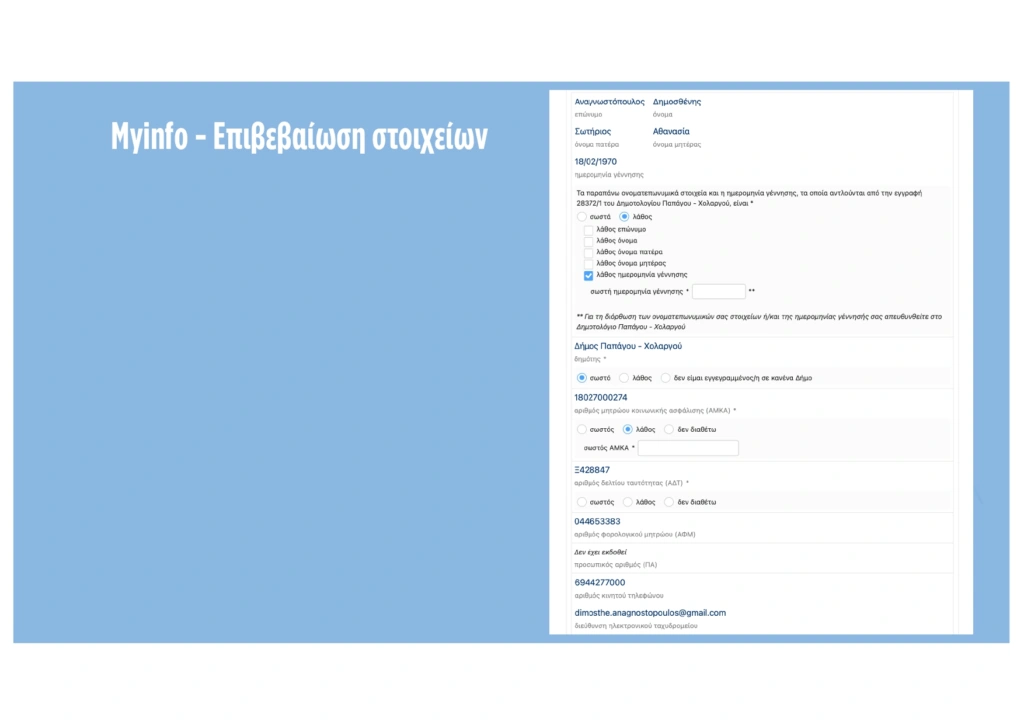Κατόπιν της επιβεβαίωσης των στοιχείων από το φυσικό πρόσωπο: