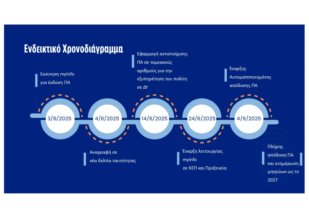 Η πλατφόρμα αναμένεται να ξεκινήσει τη λειτουργία της στις αρχές του Ιουνίου. Ο Προσωπικός Αριθμός θα αναγράφεται αυτοματοποιημένα στις νέες ταυτότητες, στην πίσω όψη, και θα αποτελεί το αναγνωριστικό που επαληθεύει μοναδικά την ταυτότητα του προσώπου στον ψηφιακό κόσμο, αντίστοιχα με τον αριθμό δελτίου ταυτότητας που σε συνδυασμό με τη φωτογραφία ταυτοποιεί το πρόσωπο στον φυσικό κόσμο.